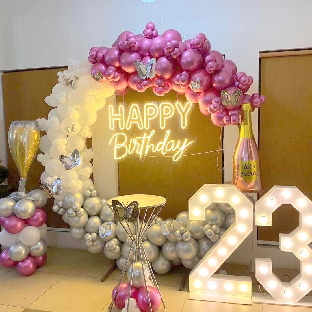 We can create everything you can imagine, from sophisticated balloon arches and fun balloon garlands to striking balloon centerpieces. We can make personalized balloon decorations that are ideal for your theme and style, whether you're going for a whimsical or elegant appearance or something fun and whimsical.
